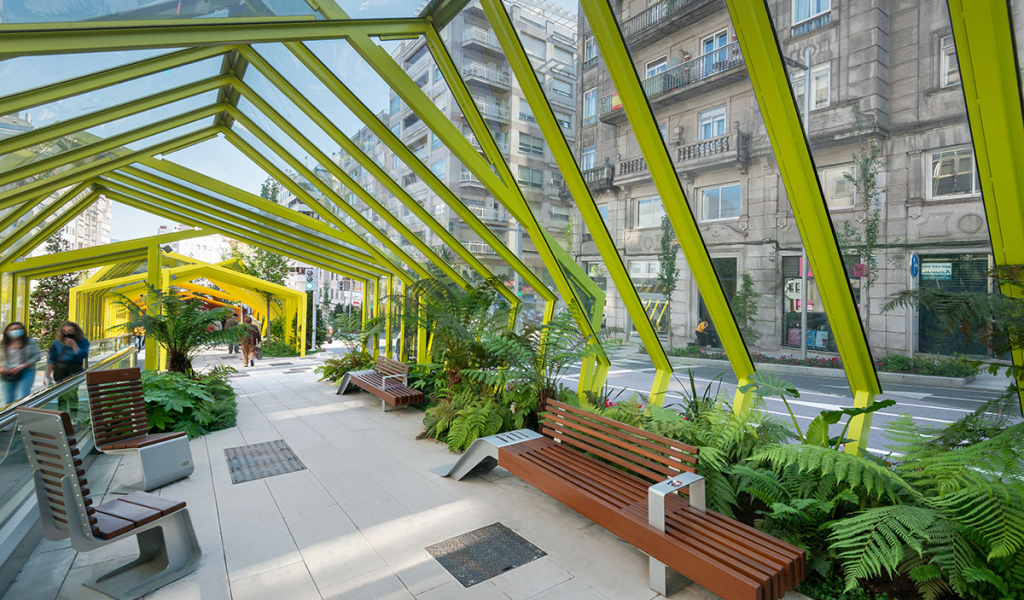 El proyecto de rehabilitación y transformación del entorno urbano de la Gran Vía de Vigo, se enmarca dentro de la EDUSI VigoVertical englobando seis líneas de actuación dentro de los siguientes objetivos temáticos: