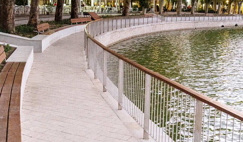 Otras novedades son la nueva pavimentación con una combinación de formatos de la serie RAW de QUADRO y mejoras en la accesibilidad en el itinerario que rodea el estanque; la instalación de bancos de madera y granito; la creación de un mirador y una playa; la renovación de las instalaciones náuticas y la plantación de árboles y arbustos que ayudarán a diferenciar cada una de las diversas zonas del lago y su integración paisajística.